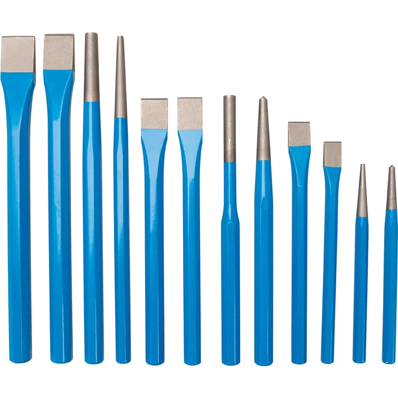 • 6 ciseaux à froid, 3 poinçons coniques, 2 pointeaux et 1 poinçon cylindrique